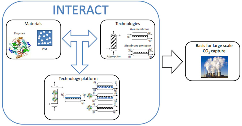 here is the separation of CO2 from flue gas. INTERACT investigates the scientific and technological